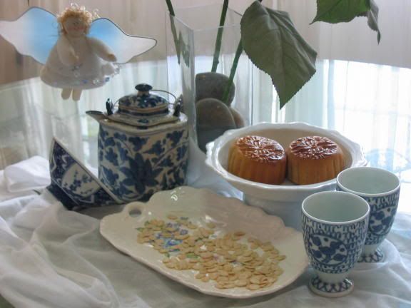 A mooncake ad never looked this classy. There's the traditional mooncakes, the traditional melon seeds, the teapot and teacups to go with the traditional chinese tea, and of course, the traditional story of Chang'Er the Moon Fairy (the angel in the inset lah). Now, who says this theme is too westernized? =)