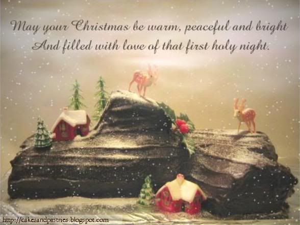 ![]() Christmas Logcake ![]() Durian Mousse Other recommendations of cakes for Christmas include English Carrot Cake, Fresh Cream Strawberry Cake, and Chocolate Fudge Cake. Please note that the decorations on your cake may differ from that depicted. For further enquiries or placement of orders, please contact SANDRA at +65 96237567 or contact her daughter CHARLENE. You may also view our website at http://geocities.com/cakespastries. Happy Christmas! ![]() Photography by Charlene, with a Canon Powershot A80. |